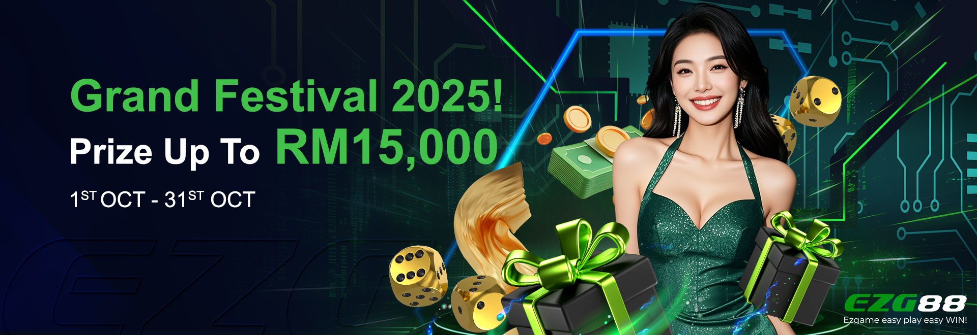 Example: Deposit MYR 15,000 = Get 3 chances. Deposit MYR 50,000 = Get 10 chances!